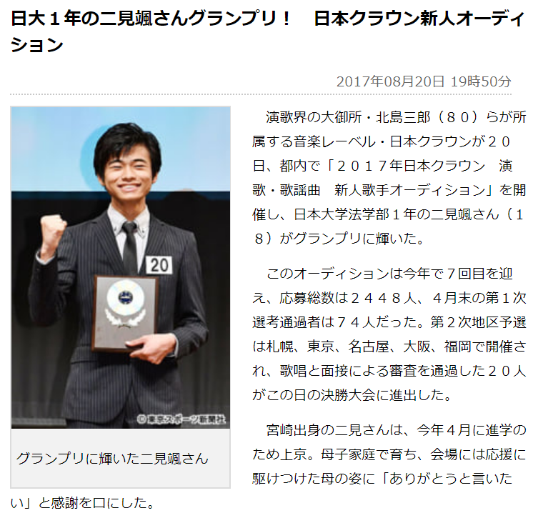 『2017年日本クラウン 演歌・歌謡曲新人歌手オーディション」
